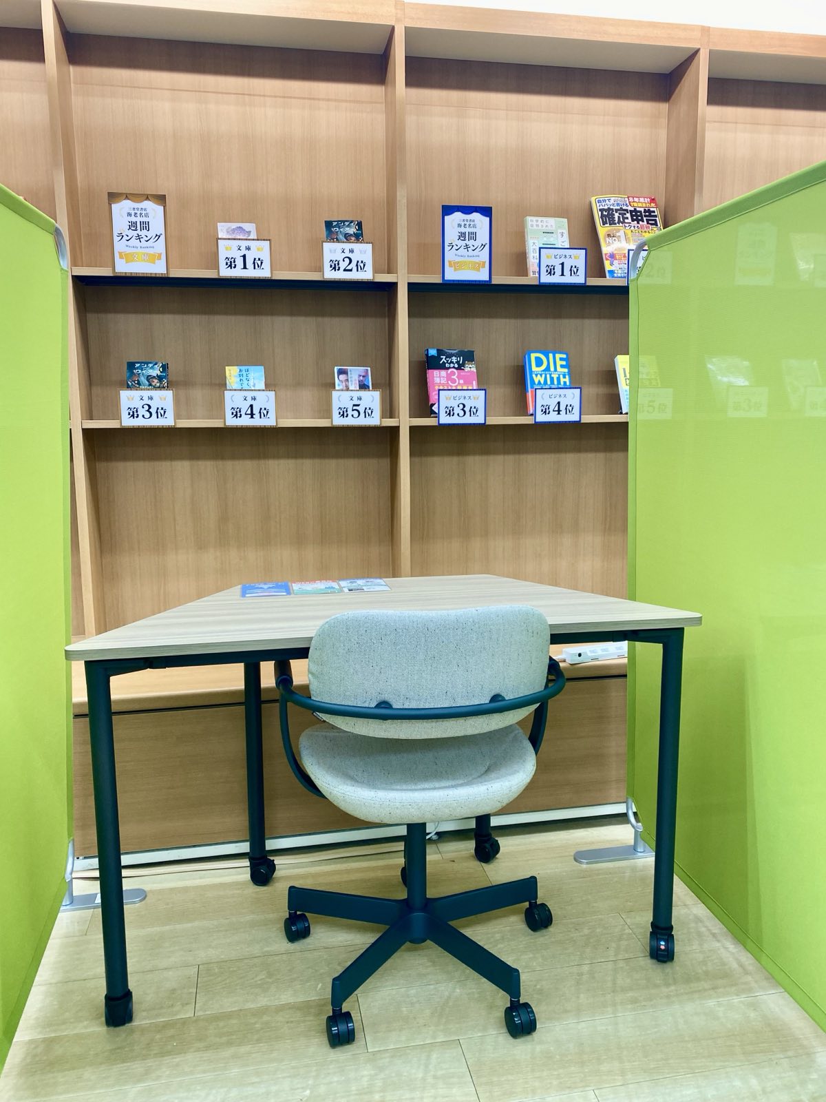また別の本棚には書店内の著書ランキングも掲載されております。今話題になっている本、気になっていた本が見つかるチャンスかも!