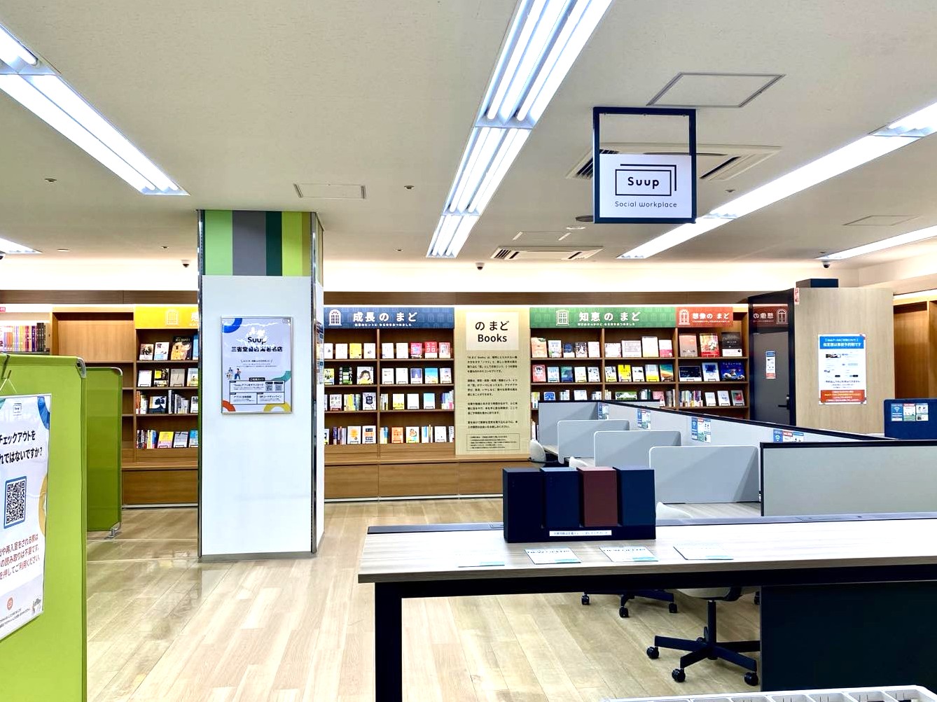 本取り組みは、株式会社三省堂書店が考える「本を買う場所」から「本に囲まれて過ごす場所」へと進化させる新たな挑戦として、書店内の1画に弊社のSuupを展開する運びとなりました。